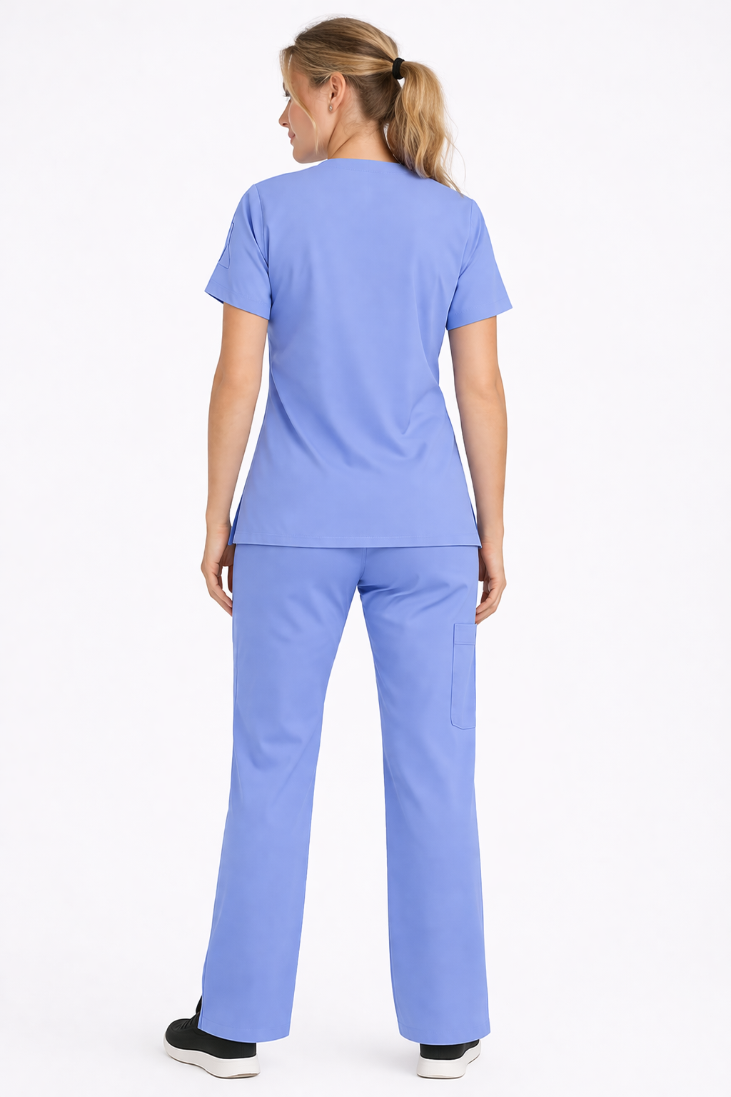 سكراب طبي نسائي سماوي غامق | قماش ستريتش مقاوم للتجعد | راحة وأناقة تدوم طوال اليوم
